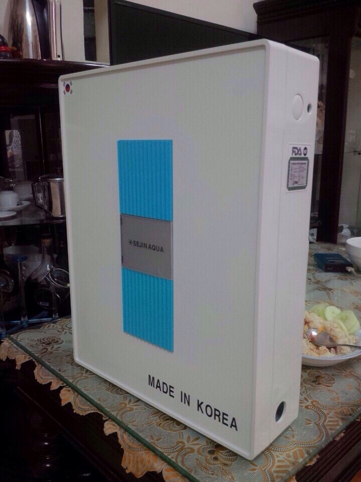 Máy lọc nước SEJIN AQUA AQ-01 nhập khẩu chính hãng nguyên chiếc tại Hàn Quốc (MADE IN KOREA) sản xuất với dây chuyền công nghệ đạt tiêu chuẩn ISO 9001:2008 và ISO 14001:2004. Tất cả các máy đều có dán tem xác thực ở góc trái phía trên thân máy cùng với logo dập nổi vào thân máy cũng như lõi lọc. Điều này giúp bạn yên tâm hơn về nguồn gốc xuất xứ của máy.
